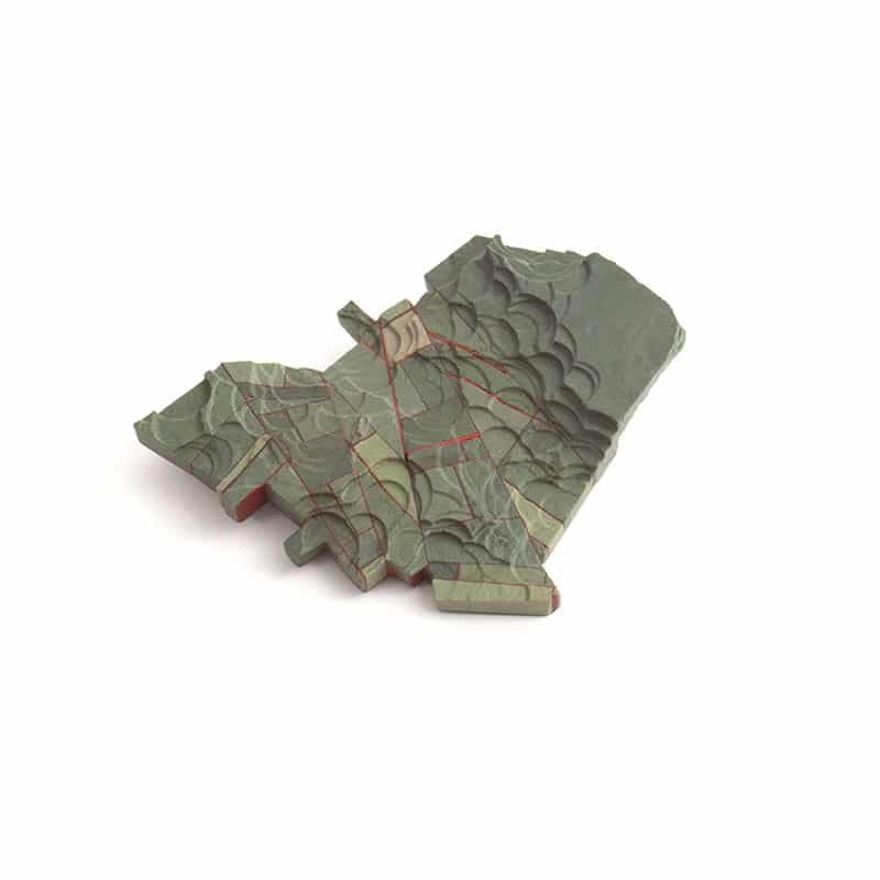 Brooch in Pakohe /metamorphic argilite, carbon fiber, silver, structural adhesive